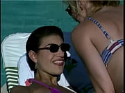 Blonde coeds get naked in pool then fuck each o... -
