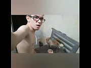 Nerd safado gozando na goiabada e lambendo