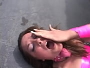 Girl gets a gag ball in her mouth and publicly ...